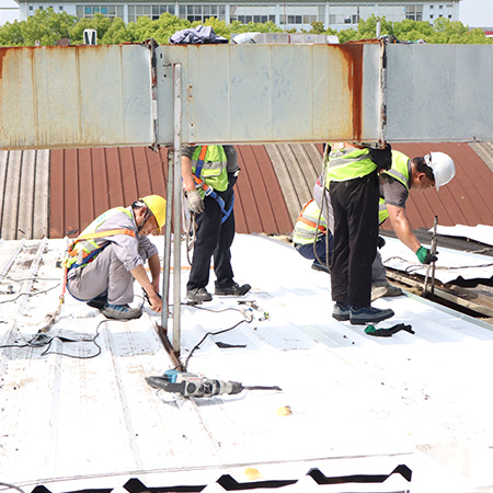 海美防水瓦以鋼板為基板,表面貼覆具有防水防腐功能的TPO/PVC卷材(熱塑性聚烯烴類防水卷材),是海美金屬推出的新一代防水防腐屋面建筑材料。海美防水瓦主要特點就是在各類環境下不易生銹不易漏水,使用熱風焊接進行相連,覆蓋全部裸露的縫隙,在使用過程中可以達到蓄水不滲透的效果,防水效果好,同時還有較好的抗風揭性能和耐老化性能,為鋼結構建筑屋面提供了長久的防護。