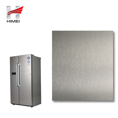 家電用覆膜鋼板,就是鋼板的基材上面覆了一層PET膜/PVC膜,然后通過覆合貼覆而成,主要應用在各類家電外殼裝飾上,例如冰箱、洗衣機、電飯煲等外殼部件。覆膜是一種物理工藝,一層膜一層鋼板經過高溫高壓壓合而成。